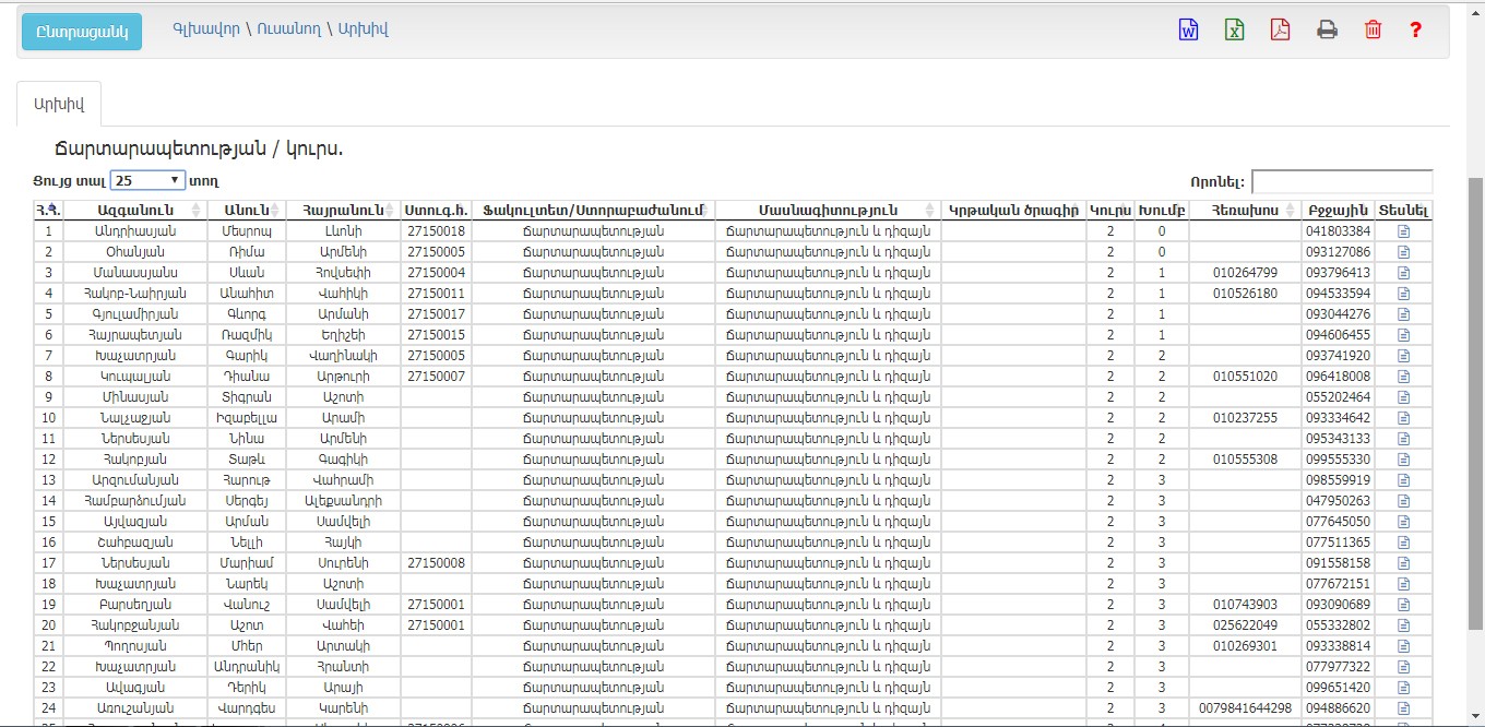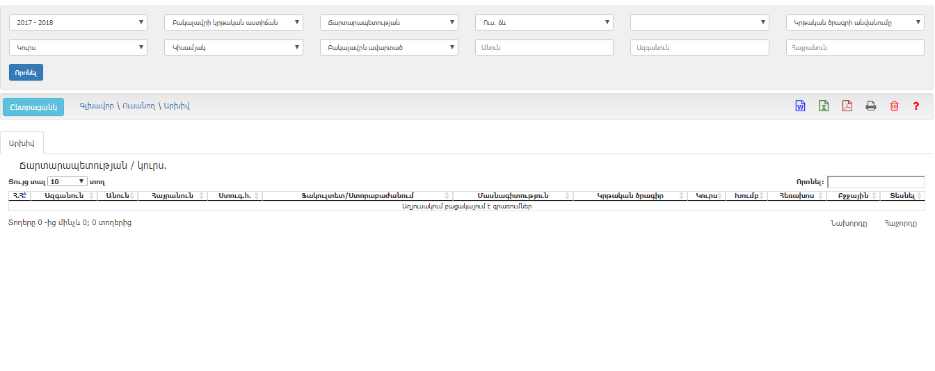 էլեկտրոնային բազա, որտեղ տեղափոխվում և պահպանվում են ավարտած, համակազմից հանված և այլ ուսանողներ, ովքեր այլևս ենթակա չեն վերականգնման: Այս բաժինը հնարավորություն է տալիս անհրաժեշտության դեպքում դիտել և տպել յուրաքանչյուր ավարտած ուսանողի դիպլոմի հավելվածը:
