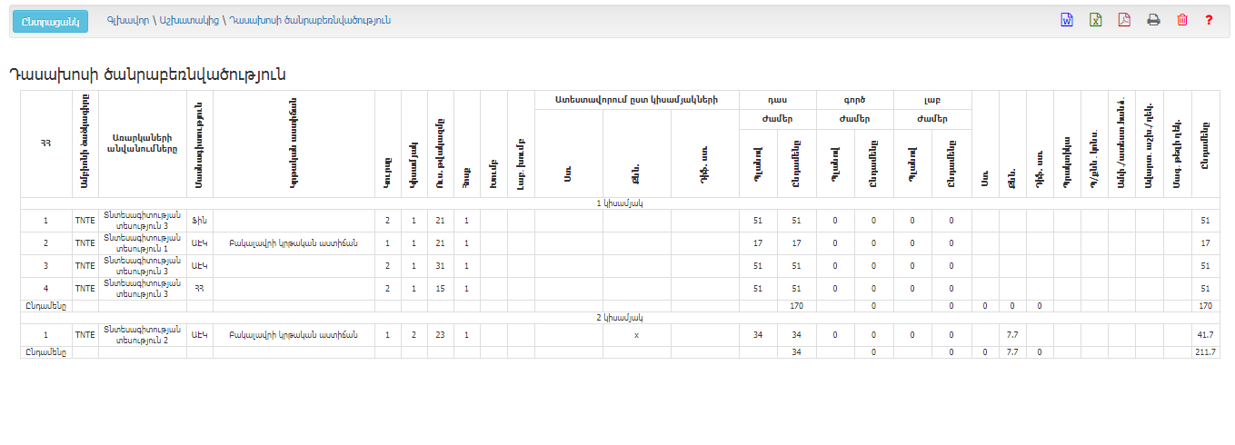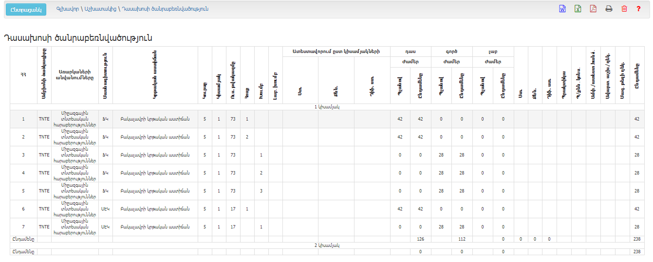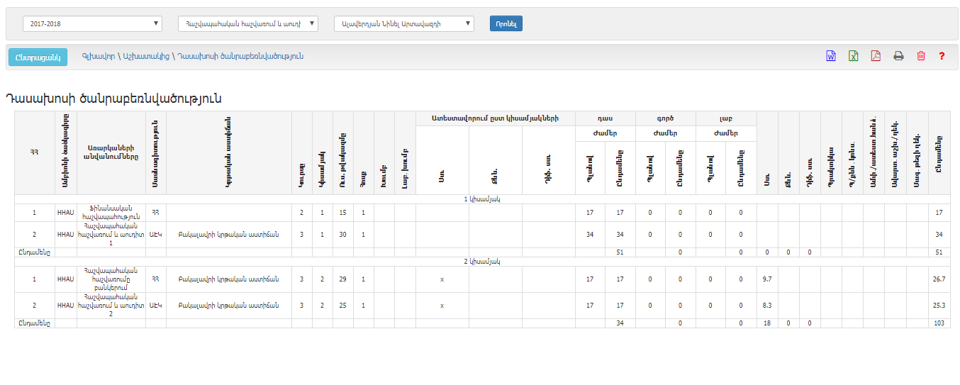 Ենթամոդուլը ձևավորվում է ամբիոնի ծանրաբեռնվածության հիման վրա: Համակարգը հնարավորություն է ընձեռում տեսնել ինչպես դասախոսի ընթացիկ ուսումնական տարվա, այնպես էլ նախորդ ուսումնական տարիների ծանրաբեռնվածությունները: Համակարգը հնարավորություն է տալիս բացի դրույքից նշել նաև ժամավճարների չափը (ըստ ժամերի):