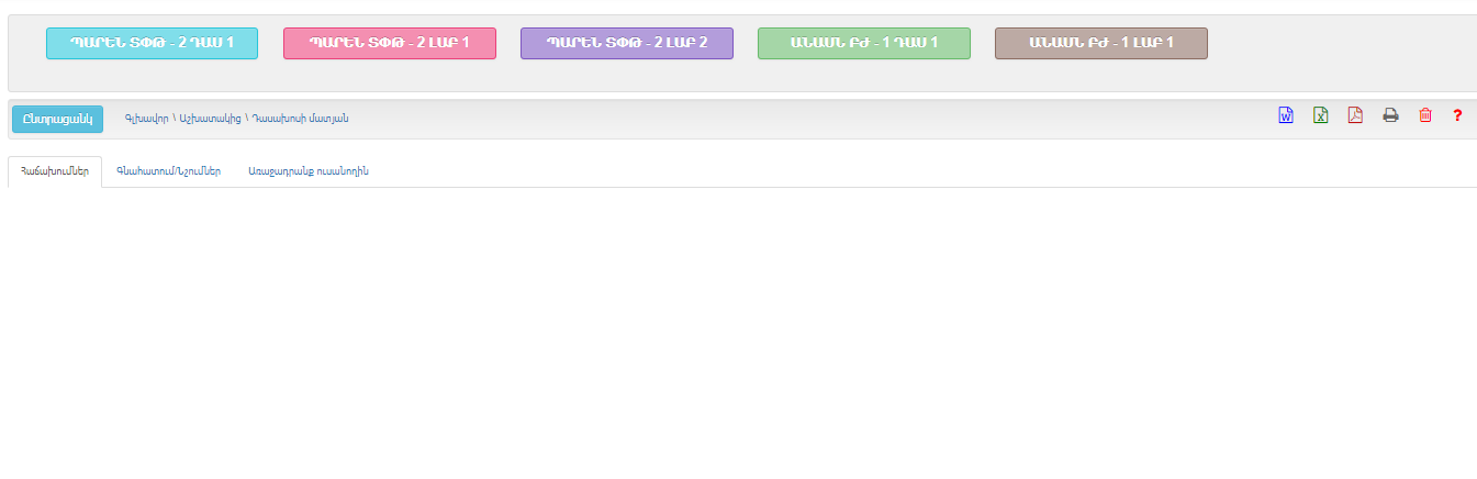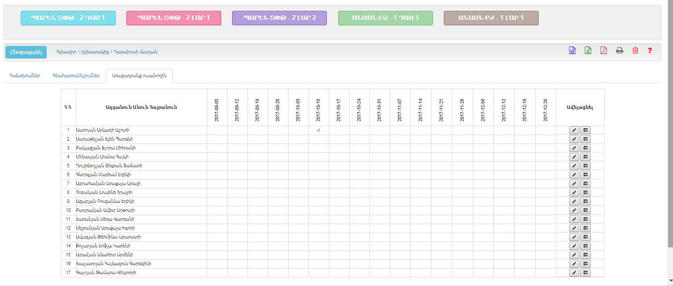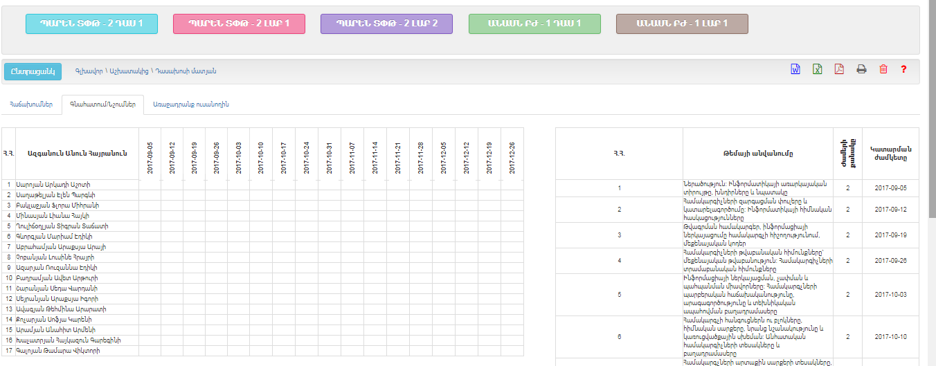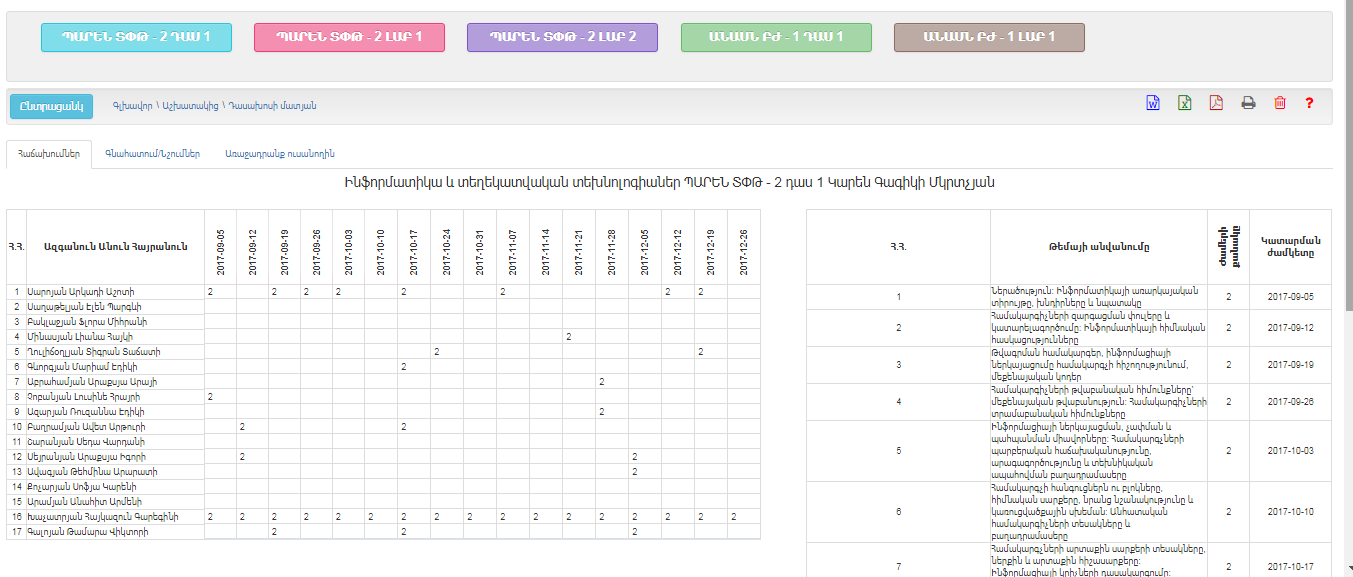 Ենթամոդուլում լրացվում են ուսանողների և՛ հաճախումները, և՛ գնահատականները: Հաճախումներ բաժնում լրացվում են ուսանողների բացակաները թվային տեսքով: Իսկ ակադեմիական գնահատում/նշումներ բաժնում դասախոսը հնարավորություն ունի իրականացնել նշումներ, որոնք տեսնելու և փոխելու իրավունք ունի միայն դասախոսը: Դասախոսի մատյան ենթամոդուլում են արտացոլվում նաև տվյալ դասընթացի օրացուցային պլանները, որոնք ձևավորվում են ուսումնական մոդուլի առարկայական ծրագրերից ենթամոդուլում: