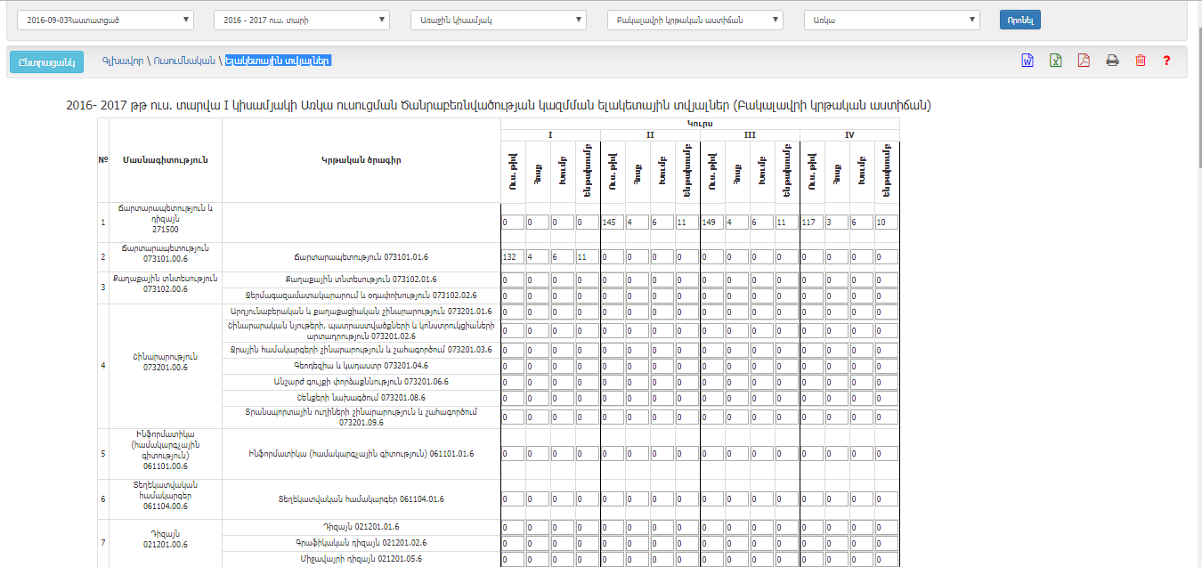 Ենթամոդուլում նշված են ուսանողների քանակներն ըստ մասնագիտությունների և կուրսերի, որը հնարավոր է փոփոխել ամբիոնի ծանրաբեռնվածության կազմման համար, քանի որ ամբիոնի ծանրաբեռնվածությունը կազմելիս հստակ չկա առաջին կուրսեցիների քանակը: