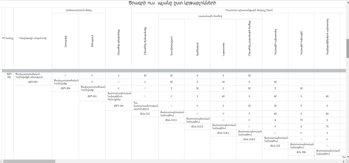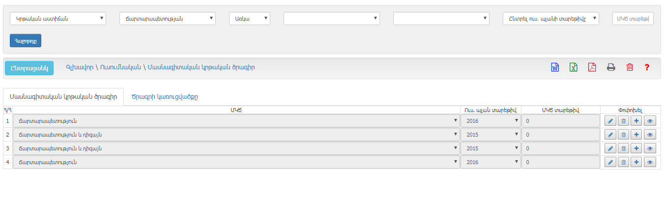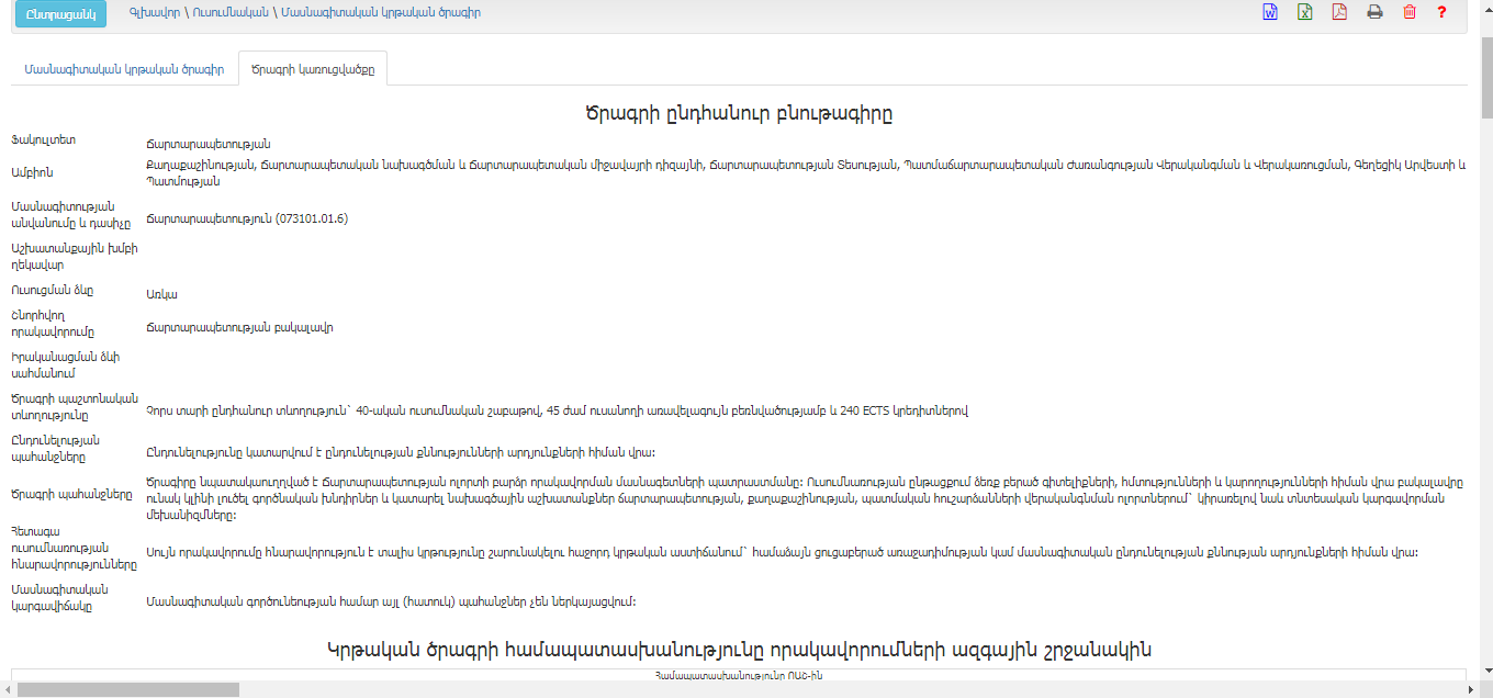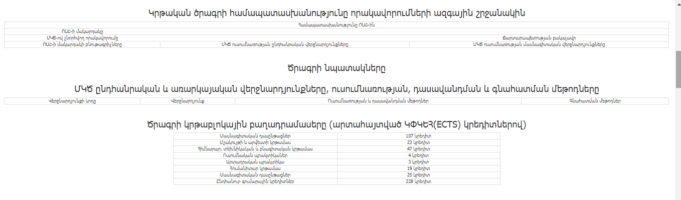 Ենթամոդուլն իր մեջ պարունակում է կրթական ծրագրի կառուցվածքը, որը կրթական ծրագրի պատասխանատուները մուտքագրում են համակարգ․