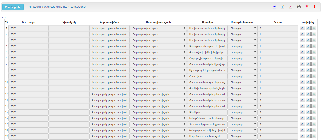 Ենթամոդուլում արտացոլվում են արդեն ստեղծված բոլոր տեղեկագրերը: Դրանք հնարավոր է ֆիլտրել: Ֆիլտրերի շնորհիվ ցանկացած պահի հնարավոր է տեսնել նաև համակարգով գեներացված ոչ միայն տվյալ կիսամյակի և ուսումնական տարվա, այլև ցանկացած այլ ուսումնական տարվա տեղեկագրերը: